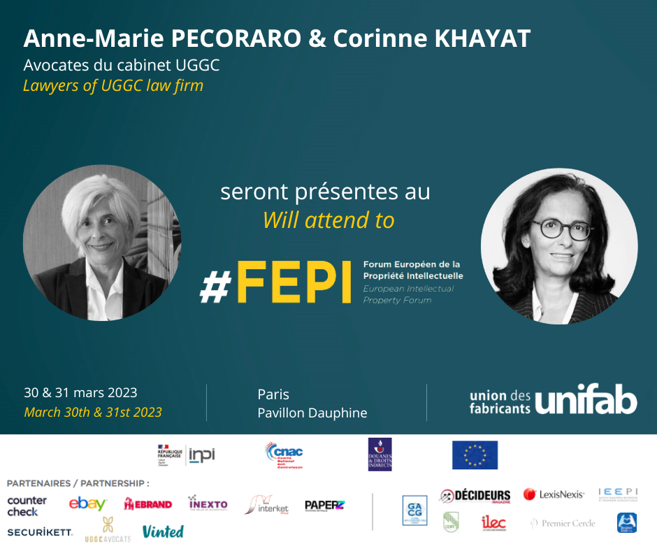 Anne-Marie Pecoraro et Corinne Khayat associées, participeront au Forum Européen de la Propriété Intellectuelle (FEPI) organisé par l’Union des Fabricants sur le thème : « Quel futur pour la propriété intellectuelle ? »