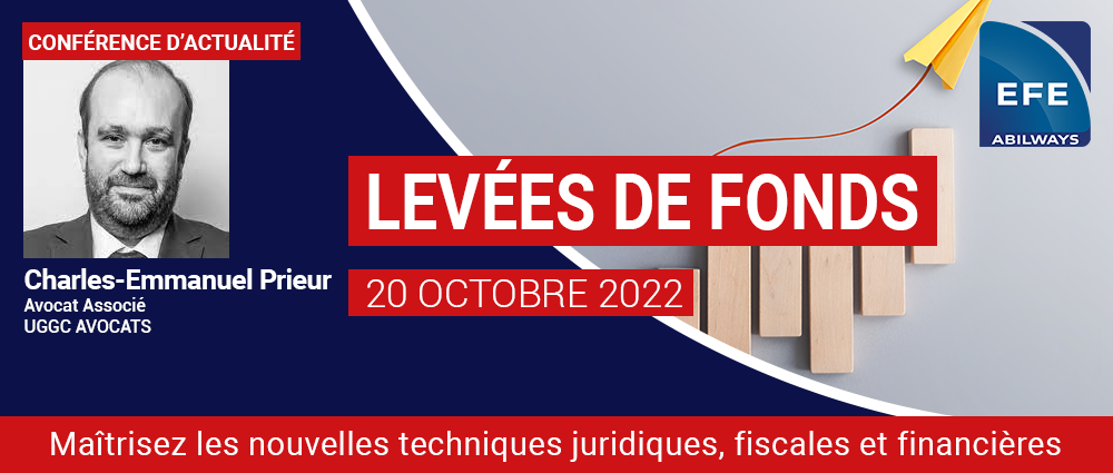 Le 18 octobre 2022 – Charles-Emmanuel Prieur, associé UGGC Avocats, interviendra lors de la prochaine conférence d’actualité de l’EFE portant sur les levées de fonds.