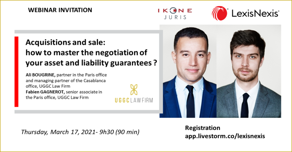 Ali Bougrine and Fabien Gagnerot will be the speakers on March 17, 2021 from 9:30am onwards during the conference organized by LexisNexis and its partner Ikone Juris, on the theme “Acquisitions and transfers: getting the negotiation of your asset and liability guarantees under control ?”.