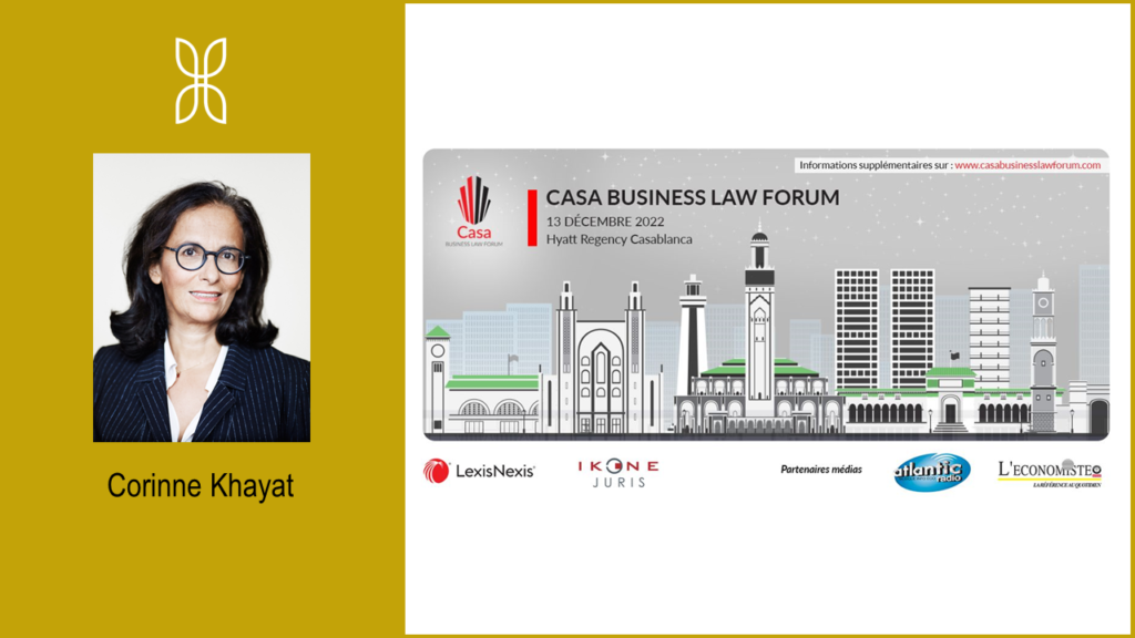 Corinne Khayat will speak on December 13 between 9:30 and 10:45 am at the Casa Business Law Forum 2022 organised by LexisNexis and Ikone Juris at the Hyatt Regency Casablanca, on the following topic: “Corporate compliance programmes: presentation of practical implementation modalities and benefits for economic operators”.