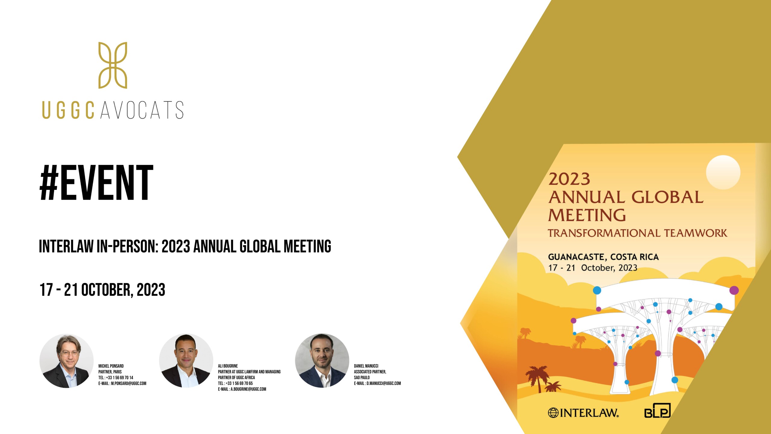 UGGC Avocats, Interlaw Ltd. member, attends the annual conference, hosted by BLP Legal, with Michel Ponsard partner at UGGC Avocats, Ali Bougrine partner at UGGC Avocats Lawfirm and Managing partner at UGGC Africa, and Daniel Maucci, partner associate in Brazil.