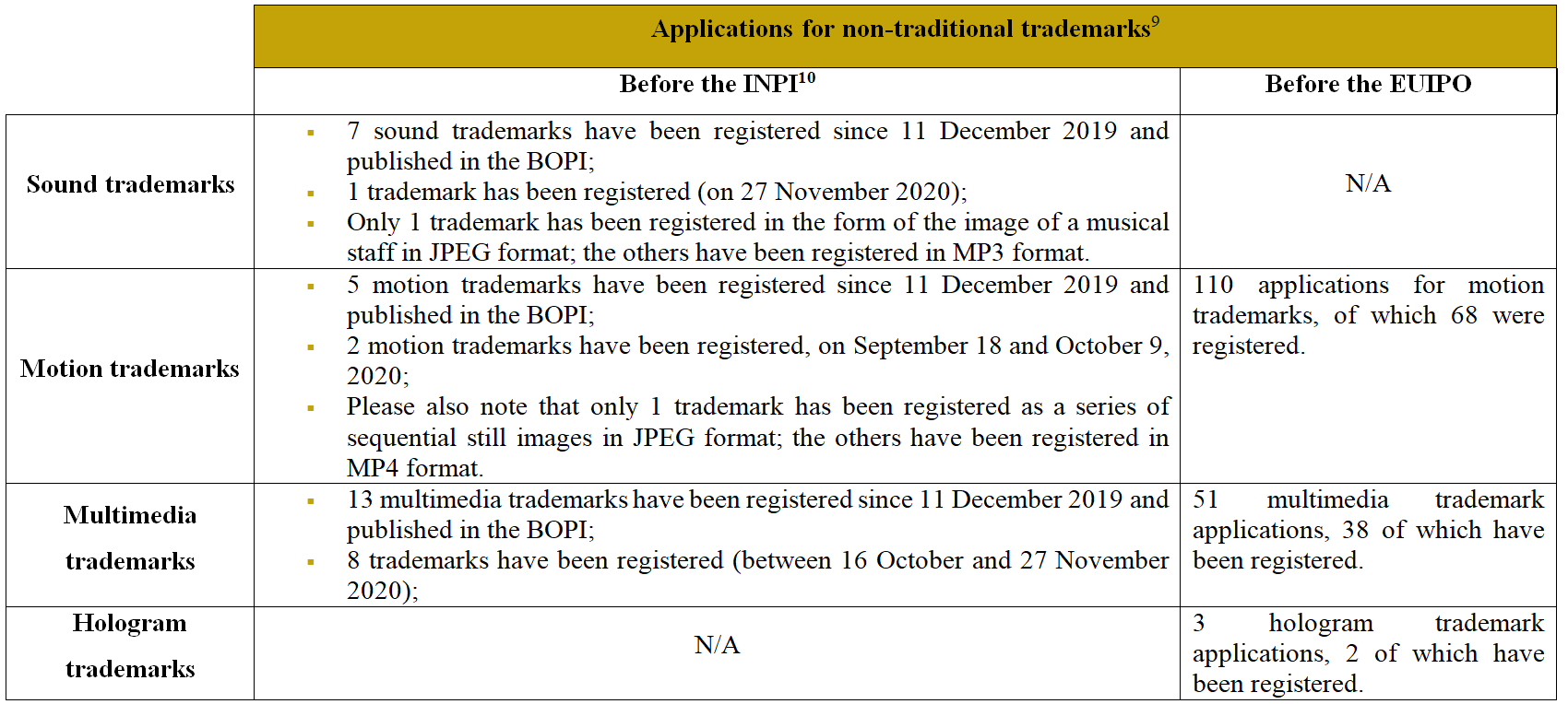 [9] From S. Kolagji et M.Bigoy « Les nouveaux types de marques un an après l’entrée en vigueur du Paquet Marques : bilan chiffré, exemples et analyse », PIBD 1151-IV-1, January2021