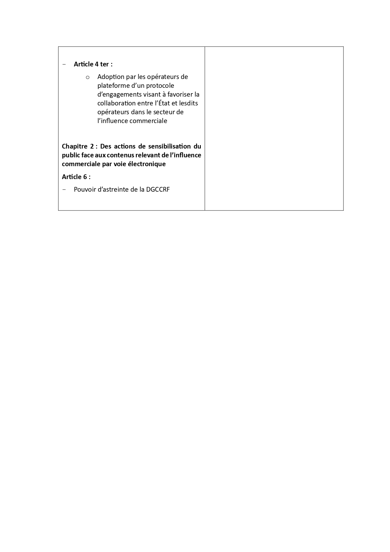 Il cible notamment les multiples acteurs de l’influence (les influenceurs, agents d’influenceurs, annonceurs et plateformes qui hébergent leurs contenus) pour renforcer leur responsabilité.