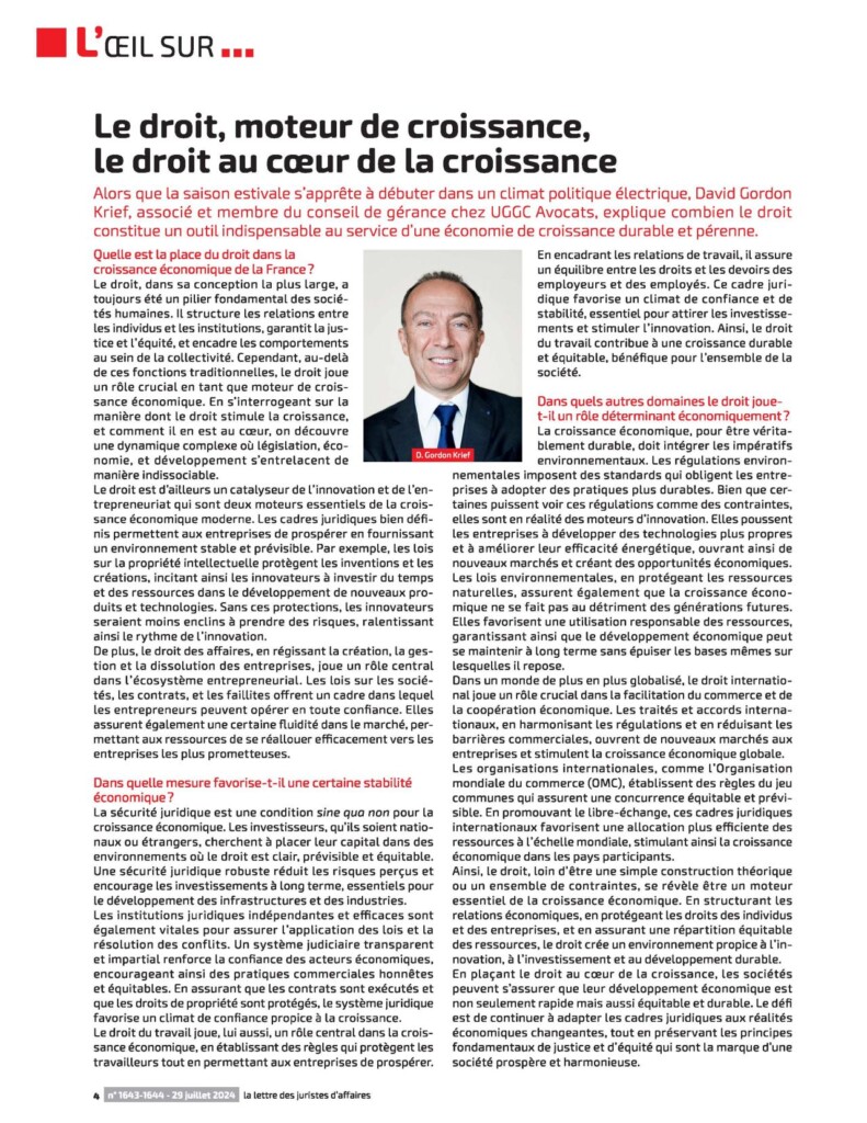 La lettre des juristes d’affaires avec David Gordon Krief : Le droit, moteur de croissance, le droit au cœur de la croissance