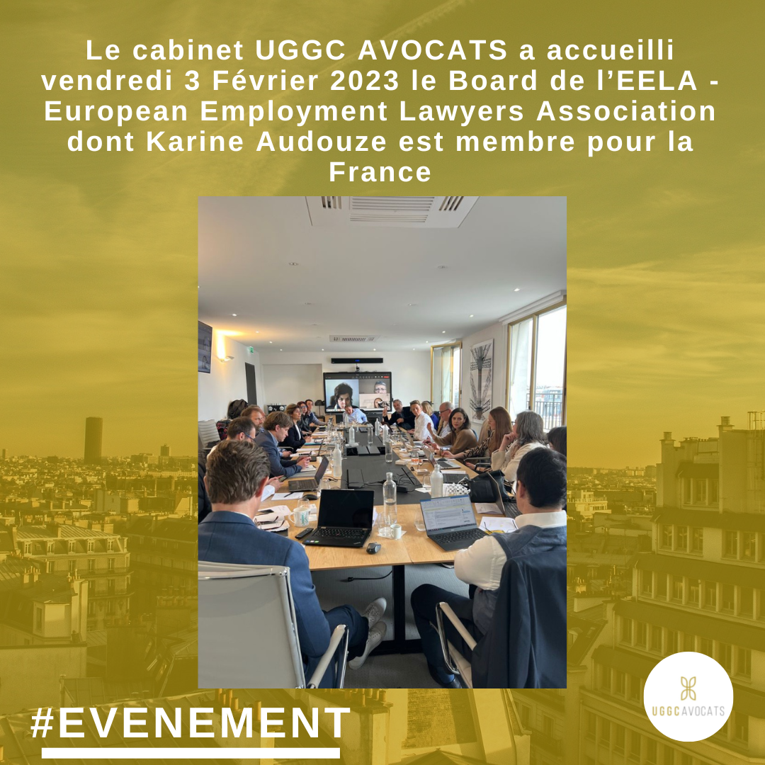 Le cabinet UGGC AVOCATS a accueilli vendredi 3 Février 2023 le Board de l’EELA – <a href="https://eela.org/">European Employment Lawyers Association</a> dont Karine Audouze est membre pour la France.