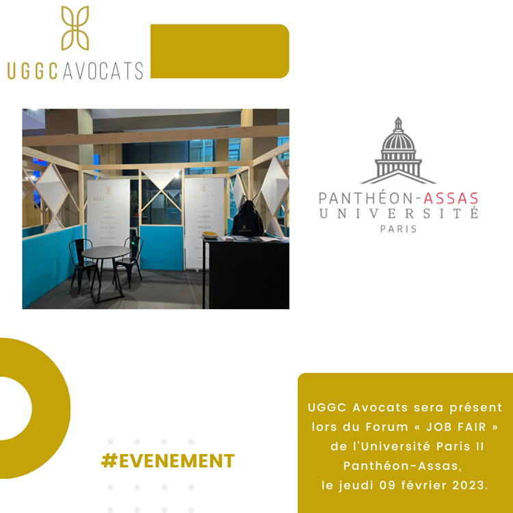 UGGC Avocats sera présent lors du Forum « JOB FAIR » de l’Université Paris II Panthéon-Assas, le jeudi 09 février 2023.